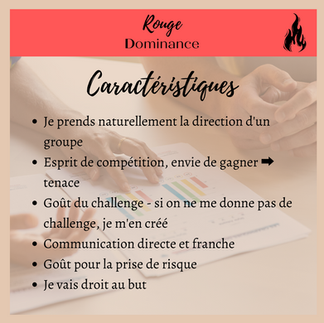 Ainsi les descriptions ci-dessous présentent le cas FICTIF d'une personne qui serait à 100% d'une seule couleur.